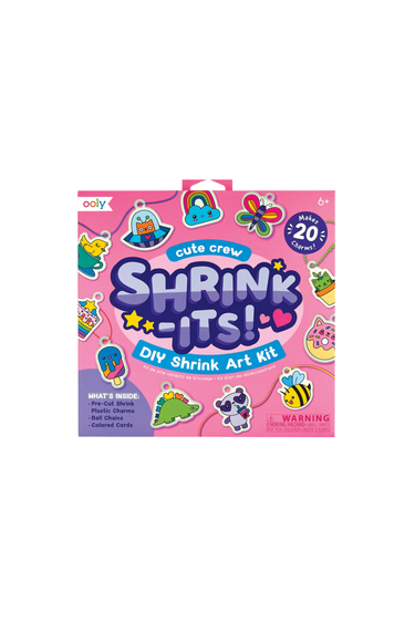 Your crew of cuties awaits in this shrink art kit. It has everything you need to create a fun charm to put on your keychain, backpack, or door! Just color in the included charms, watch them shrink down in an oven, and attach them to the cord or ball chain provided in the kit!