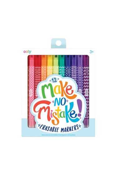 Oops-proof your art with OOLY’s Make No Mistake! Erasable Markers! This set of 12 erasable markers is perfect for little artists who love to create without worry. Each double-sided marker features a 4mm chisel tip for bold strokes and a 3mm round tip for fine details—plus, the best part? If you make a mistake, just flip it over and erase! These cute markers make coloring, doodling, and designing stress-free, encouraging creativity with every stroke. And if you really want to get creative, you can use the eraser to make some negative space designs!