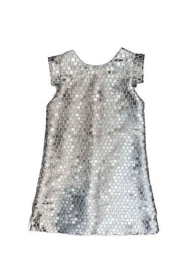This Squares A Line Dress is one-of-a-kind elegance, crafted from luxurious silver-hued fabric and designed with an exquisite square pattern. Its timeless sophistication makes it the perfect choice for any special event, making your little girl shine with effortless sophistication.