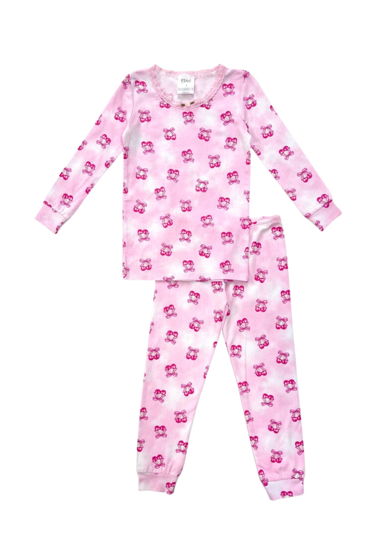 Indulge in luxurious comfort with our Esme Coquette Pajama Set. This pink long sleeve set features a delicious sweet cherry print, perfect for any young girl. Soft and stylish, our pajamas will make for a cozy and stylish evening.