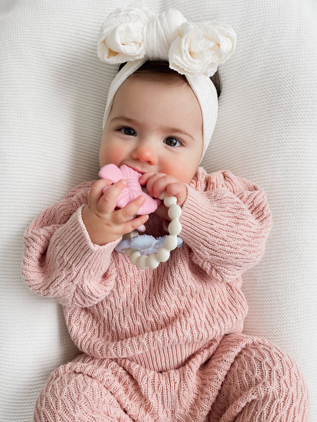 Great things come in threes. The Itzy Trio offers triple the relief with three 100% silicone teething charms, each rocking its own unique texture to soothe irritated gums. Linked together with an easy-grip silicone ring designed for tiny hands, it’s safe, convenient, and quite charming (pun intended).