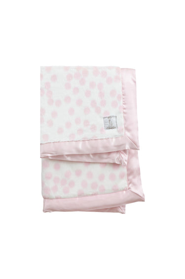 Happy dots are scattered all over this super soft baby blanket trimmed in lustrous satin.