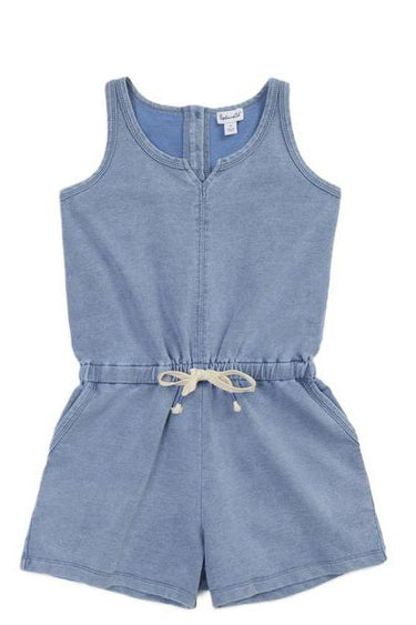 She'll love taking on the day in this one-and-done romper made from indigo French terry with a tie at the waist.