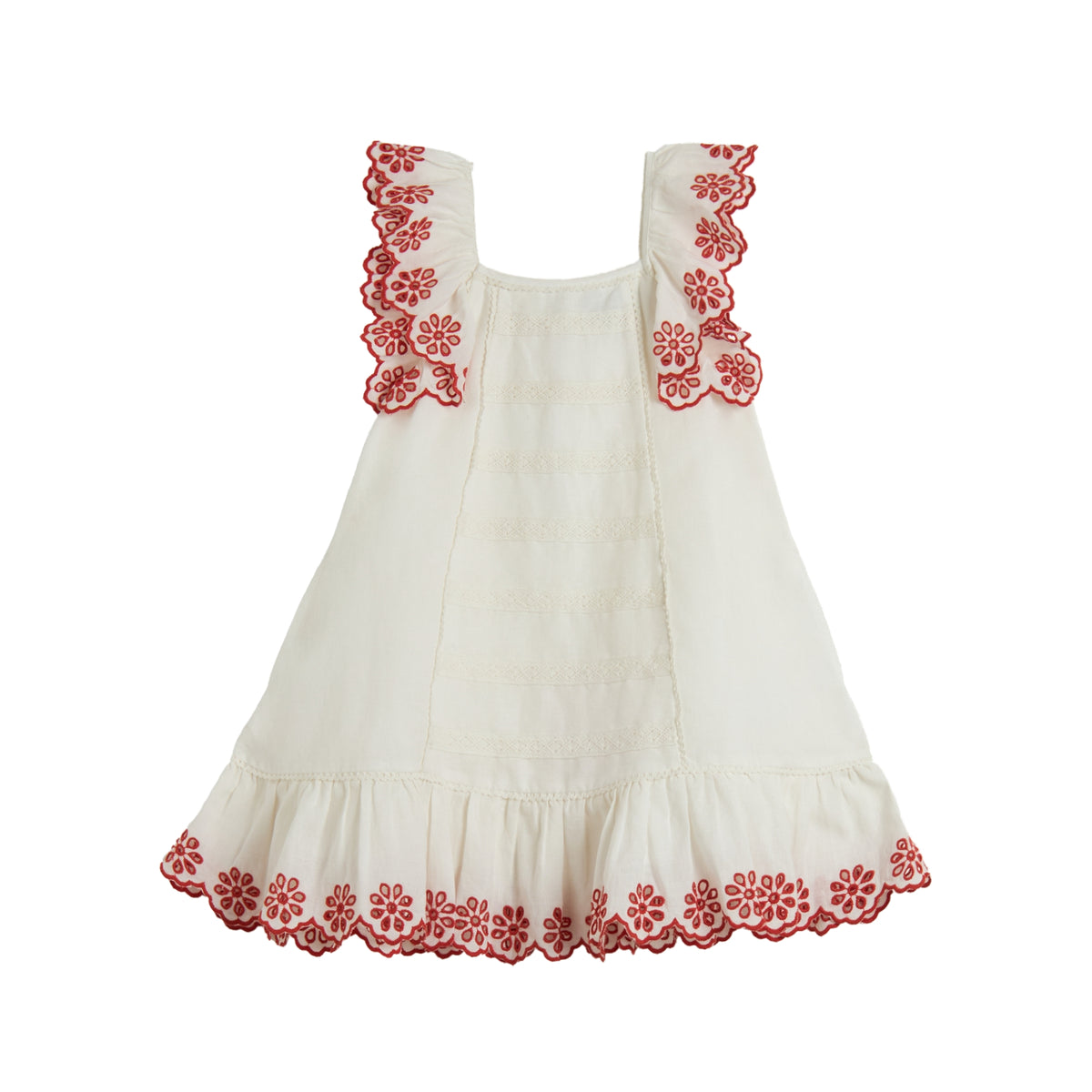 Stella McCartney Kids designs clothing for everyday adventures with vibrant colors and imaginative prints showcased on consciously crafted fabrics. This adorable dress is crafted from linen and cotton with a scalloped hem and intricate embroidery.